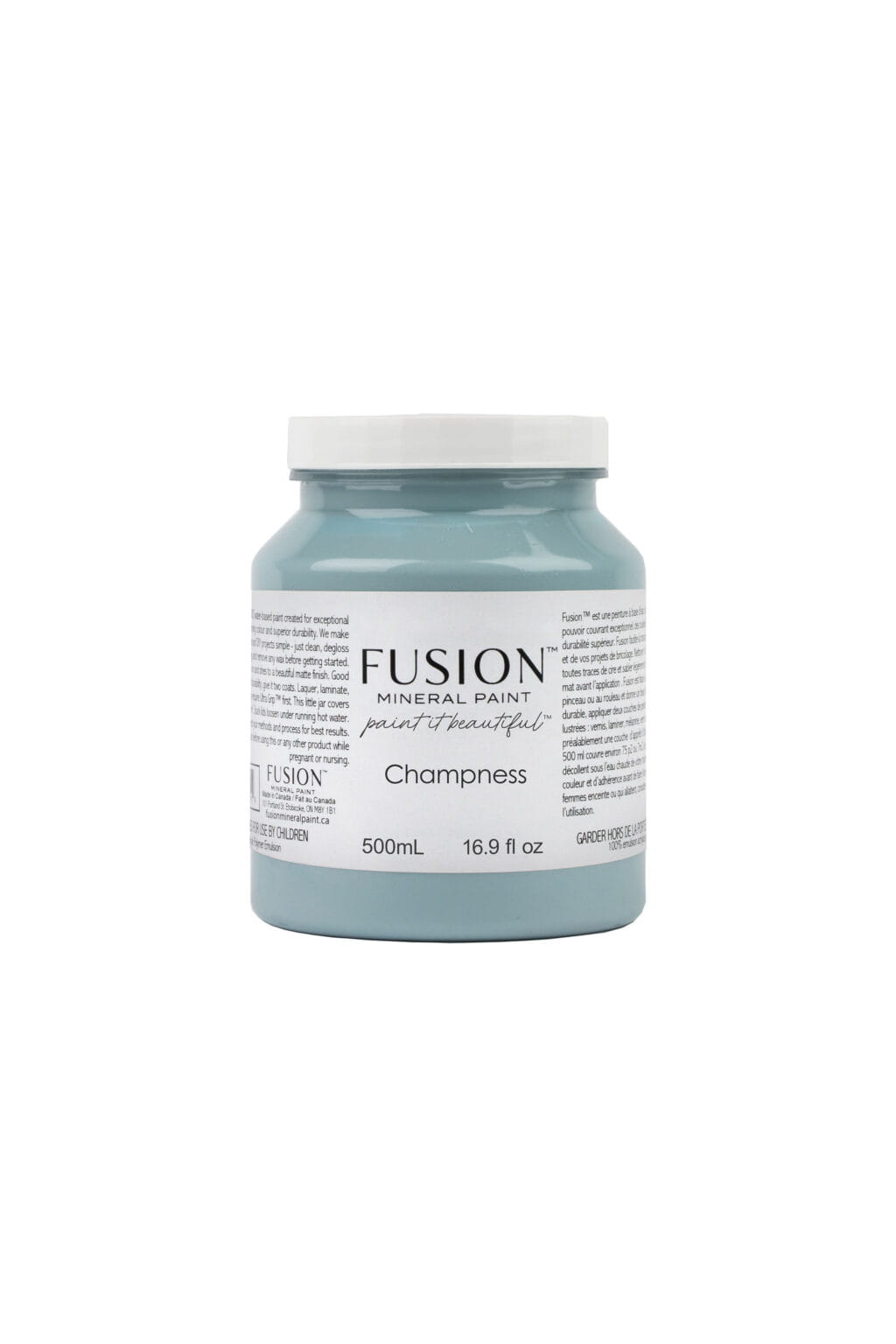 Champness Farba mineral paint Fusion - mineralna farba Fusion służy do malowania praktycznie wszystkiego: drewna, powierzchni drewnopochodnych, laminatów, mdf, powierzchni wcześniej lakierowanych, metalu, szkła, tkanin - jak np. tapicerki materiałowej, skórzanej, eko -skóry itd. Świetnie sprawdza się w pokoju, kuchni, a nawet w łazience - wewnątrz jak i na zewnątrz. W szczególności polecana do malowania mebli.Fusion Champness to błękitna farba w modnym odcieniu. Champness to błękit inspirowany morzem i niebem. Jest wystarczająco nasycony, aby wyrazić swój charakter , a jednocześnie ma cudowną, uspokajającą jakość.