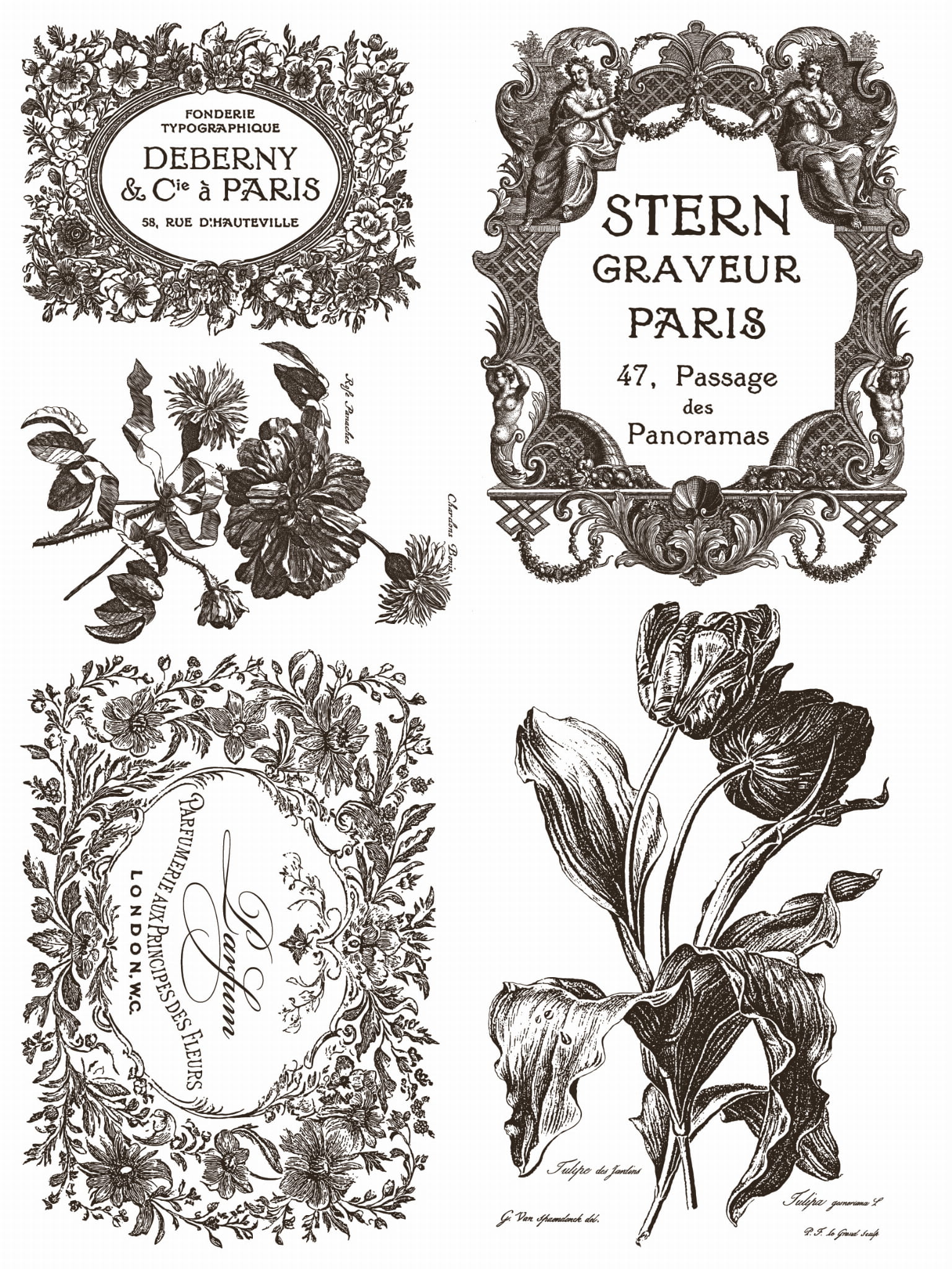 Kolekcja Floriography to hołd dla botanicznych ilustracji i symboliki kwiatów. Kwiaty, liście i naturalne ornamenty tworzą romantyczną, delikatną kompozycję w stylu vintage, shabby chic i cottagecore. Idealna do renowacji mebli, dekoracji ściennych, ramek, skrzyń i wielu innych projektów DIY.